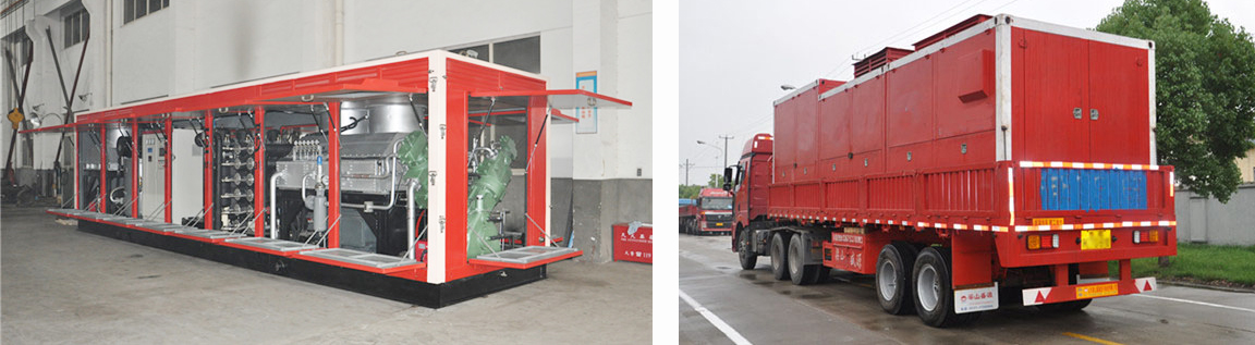 移动制氮车应用:三采作业:1) 保持油井压力,2) 与碳氢化合物一起注入油井、氮气驱油,3) 气顶、提高油气生产率,4) 气举作业、避免井下事故,5) 酸化、压裂,可解堵、增产,6) 热采助排、提高采收率,7) 蒸汽吞吐中井筒隔热,8) 控制泥浆密度,9) 清洁油井,10) 表面活性剂的理想载体,11) 提高油井产量,12) 延长油井寿命。